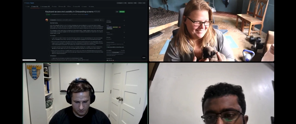 On , DEV Community member Rafi joined Christina and I on the pairing stream to work on improving some accessibility issues in the onboarding for a Forem instance, e.g. DEV onboarding.